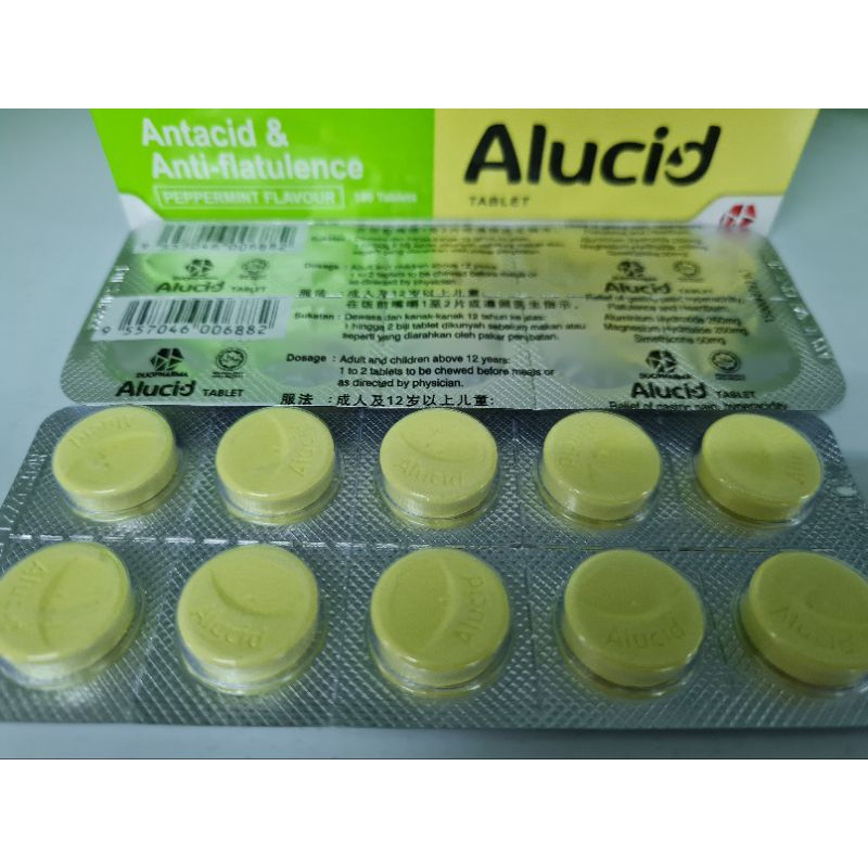 Ubat Kunyah Gas Angin Perut Kembung Sakit Gastrik Alucid 10 Biji Shopee Malaysia